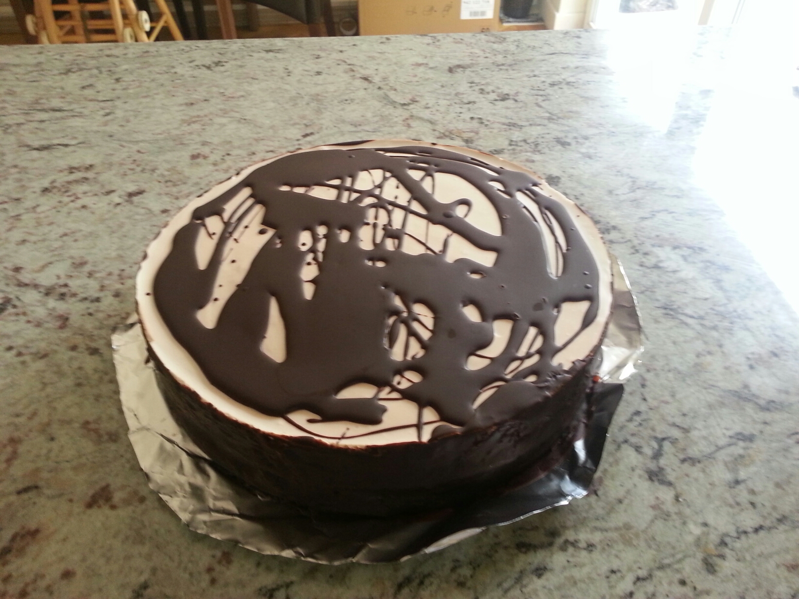 Masę czekoladową polać wg inwencji na górze tortu oraz boki.