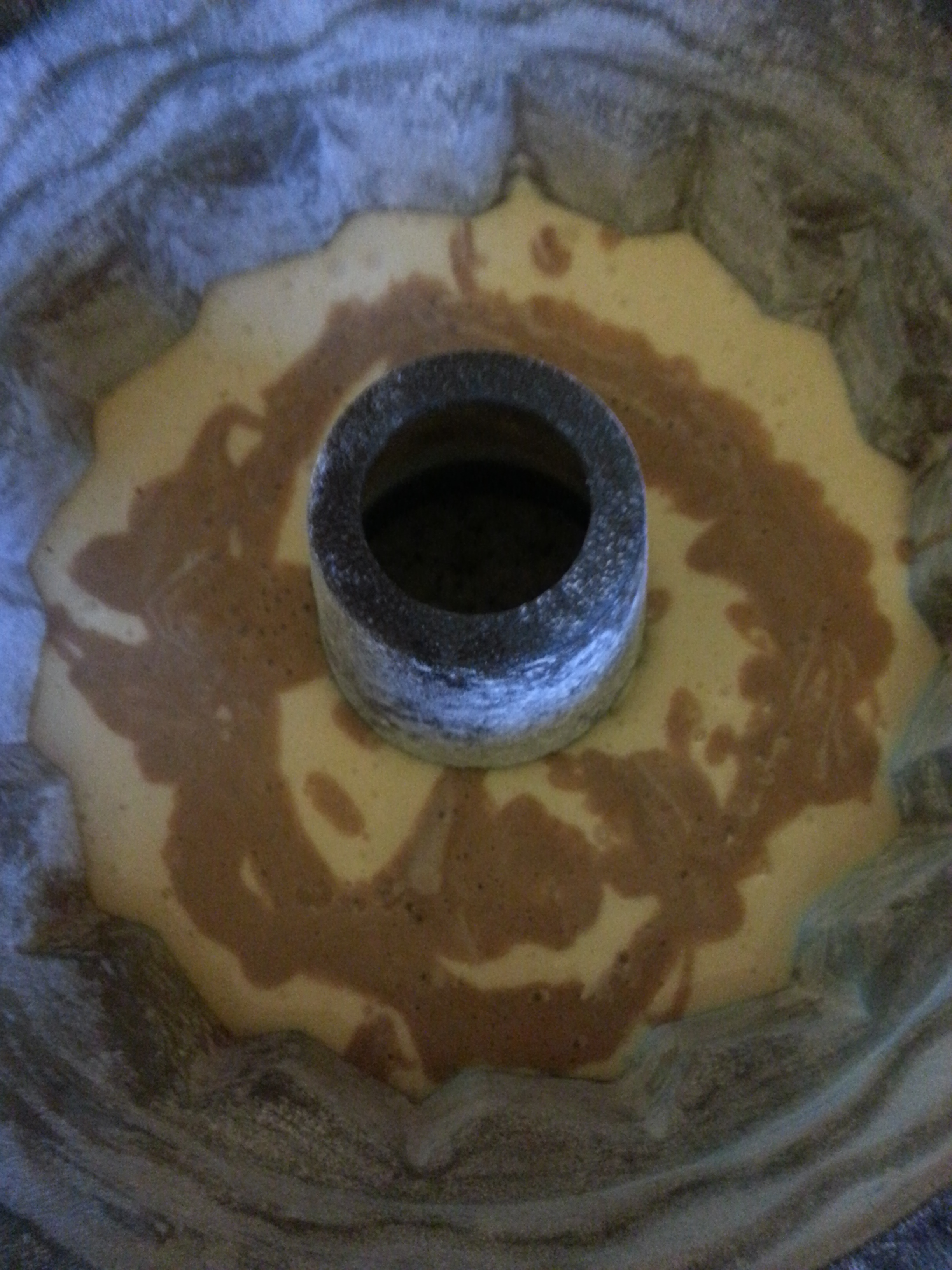 Białka i szklankę cukru ubić mikserem na sztywną pianę, dodać żółtka dalej miksując a następnie makę wymieszaną z proszkiem do pieczenia i mąka ziemniaczaną, na koniec dodać majonez . Przygotowane ciasto wlać do formy /ja używam silikonowej,którą smaruję masłem i posypuję odrobiną mąki/ zostawiając dosłownie z pól szklanki i dodać kakao, wymieszać mikserem a następnie polać resztę ciasta .