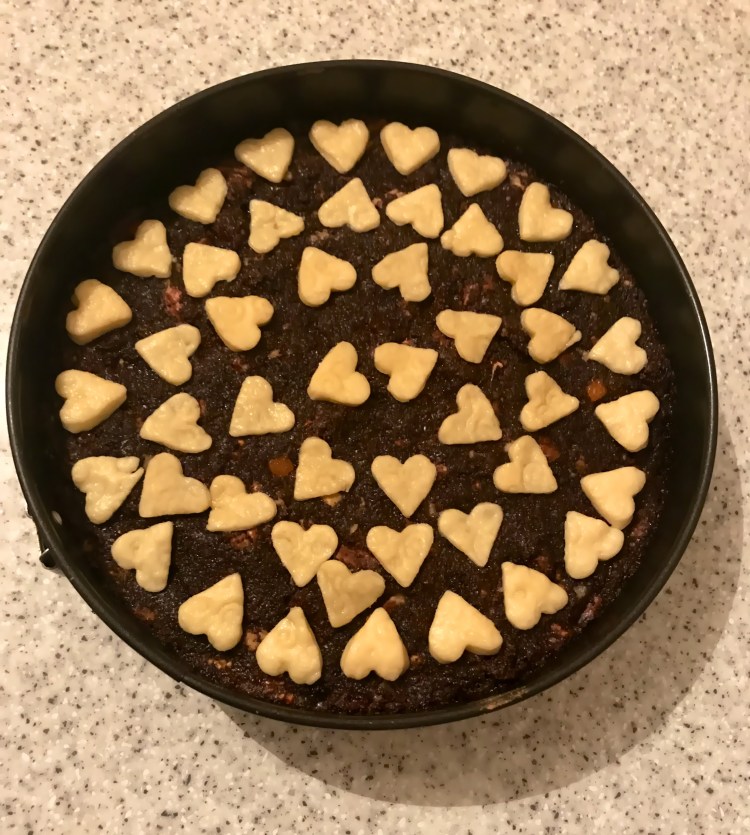 Make, cukier z prawdziwa wanilia, proszek do pieczenia oraz maslo posiekac nozem na kawalki a nastepnie dodac jajko I zagniatac az bedzie gladkie ciasto, mozna dodac do podsypywania troche maki. Wyrobione ciasto przelozyc do formy ok 34×24 wylozonej papierem do pieczenia dociskajac i rozkladajac rownomiernie palcami zostawiajac kawalek ciasta do ozdoby wierzchu ciasta. Nastepnie nakluc ciasto widelcem. Wstawic do nagrzanego piekarnika na 200 stopni celcjusza i piec przez 20 minut. Z kawalka zostawionego ciasta wycinam foremka dowolny ksztalt, ja wycinalam recznie nozem serduszka ok 4 cm.