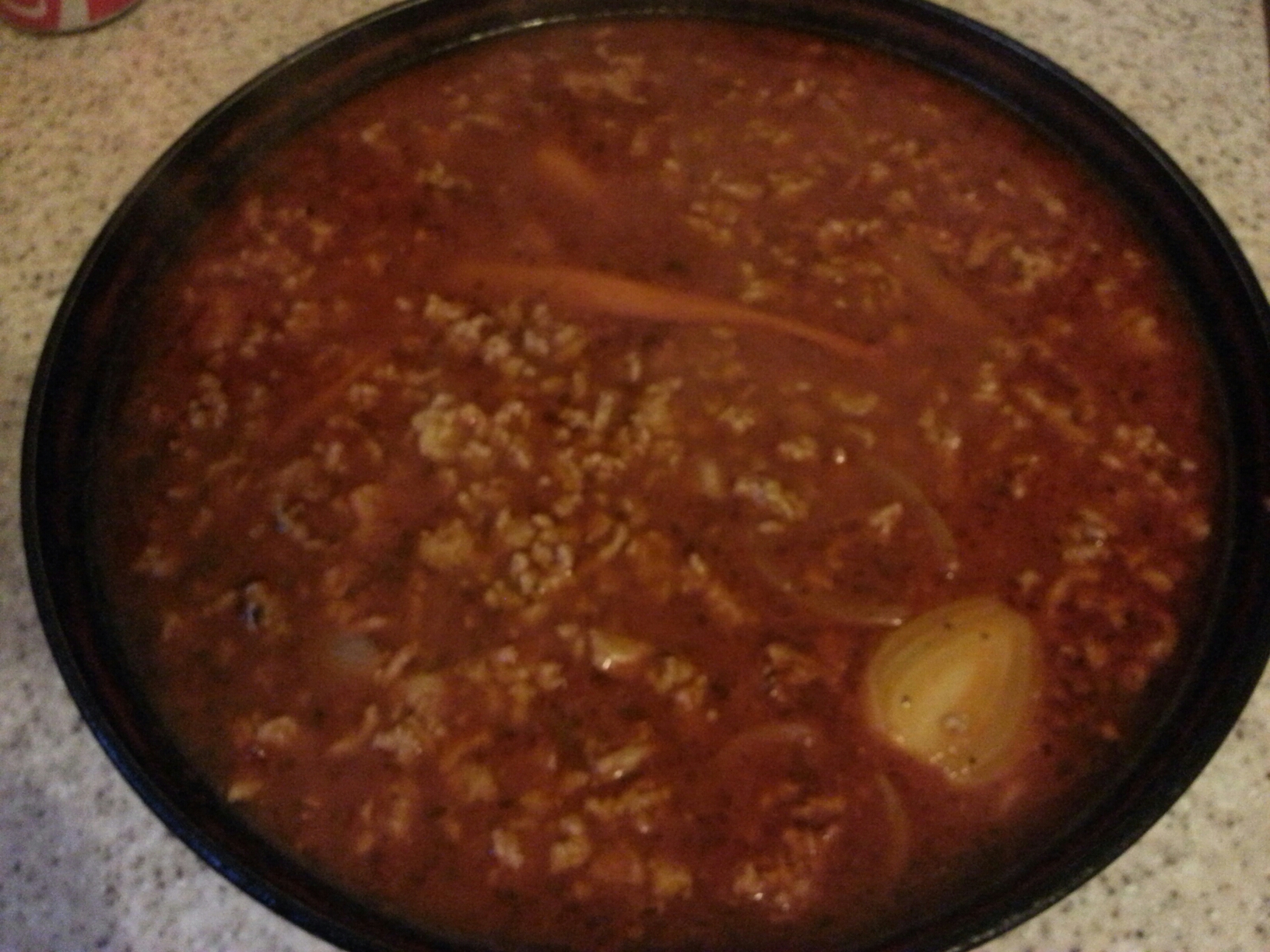 Mieso mielone podsmazyc na patelni okolo 26-28 cali na rozgrzanym oleju az zmieni swoja barwe nastepnie wypelnic goraca woda mieso az prawie po brzegi. Wrzucic czosnek, marchewke przcieta na 4 czesci wzdluz I cebule przecieta na pol razem z kostka rosolowa I dusic przez 45 min na srednim plomieniu, jezeli trzeba mozna podlac woda. Po tym czasie dodac koncentrat pomidorowy I gotowac jeszcze z 1/2 godziny. Przyprawic pieprzem a pod koniec dodac z 4 szczypty bazyli. /Calosc mozna zabielic maka rozmieszana w pol szklance wody ale nie trzeba koniecznie/. Podawac z makaronem ugotowany w goracej wodzie z lyzeczka soli I lyzka oleju. Mieszac od czasu do czasu az bedzie miekki. Nastepnie odcedzic i zalac zimna woda I ponownie odcedzic