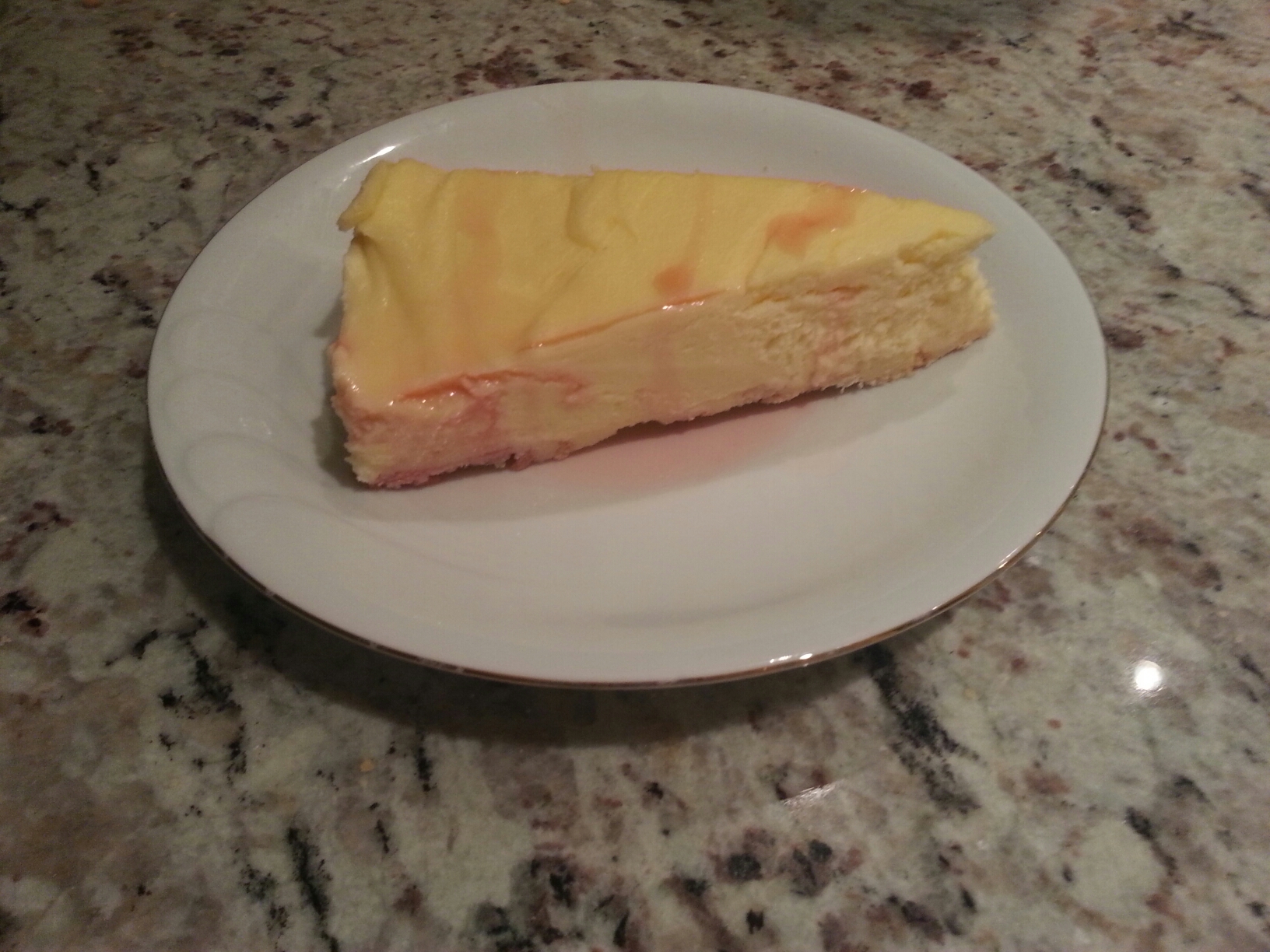The cheesecake is very tasty and very creamy, which unfortunately makes it difficult to cut, so before we use a cutting knife, we have to soak it in hot water, then it will not stick to the knife.