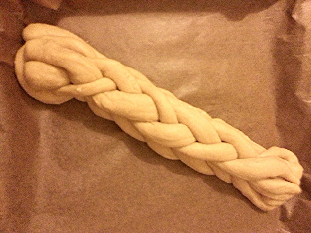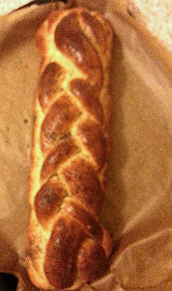 Do przesianej maki dodac wszystkie skladniki i wymieszac. Po polaczeniu skladnikow przekladam ciasto na blat I wyrabiam okolo 8-10 min /wazny czas wyrabiania by ciasto ladnie wyroslo/. Odstawiam do wyrosniecia na okolo godzine az ciasto podwoi swoja objetosc. Nastepnie dziele ciasto na 8 rownych kawalkow, nastepnie formuje na rowne waleczki. Konce pieciu waleczkow lacze razem i plote warkocz, nastepnie z trzech pozostalych plote nastepny warkocz i ukladam go na warkoczu z pieciu walkow. Calosc pozostawiam jeszcze na okolo pol godziny aby ciasto zwiekszylo swoja objetosc. Po tym czasie smaruje roztrzepanym jajkiem a nastepnie mozna wg uznania posypac chalke sezamem lub makiem. Wstawic do rozgrzanego do 180 stopni piekarnika i piec okolo 20-25 min do suchego patyczka. Podawac mozna z maslem, miodem, dzemem