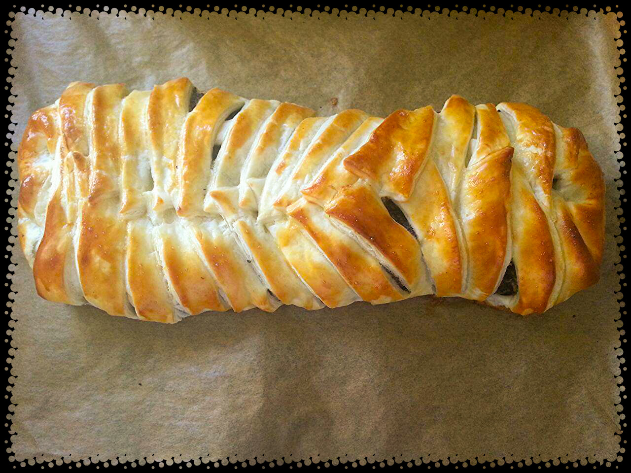 Ciasto wysmarowac rzstrzepanym jajkiem.Piec w 200 stopniach przez okolo 20 min az do zrumienienia ciasta.