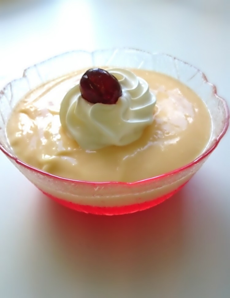 Galaretki rozpuścić wg przepisu na opakowaniu lub dodać trochę mniej wody by szybciej zgesyniala. Wylać do salaterek i wstawić do lodówki aby zastygly. Następnie rozpuścić dwa budynie wg przepisu. zostawić do wyschnięcia a następnie wylać na galaretke, która zrobiła się gęsta. Udekorować wiśnia i śmietaną.