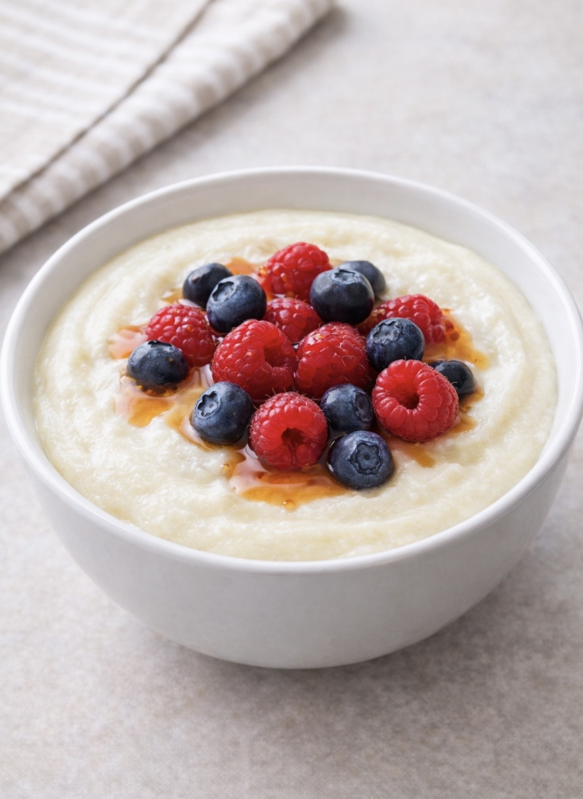 Today I’m in the mood for a comforting bowl of semolina porridge – and the best part is, you can make it with any milk you like: regular, soy, coconut, almond… whatever you enjoy most.