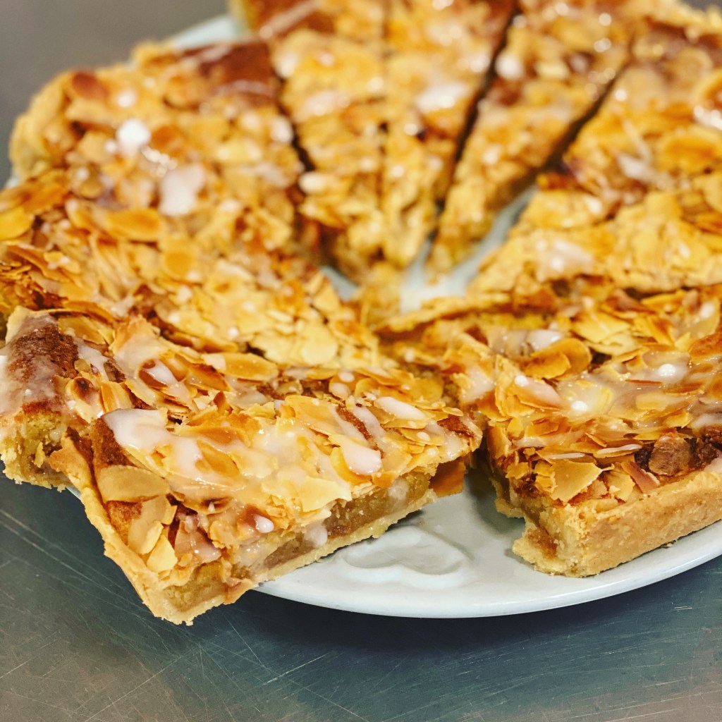 - Bake for about 35 minutes. If the almonds seem to be browning too quickly, cover the tart loosely with foil to prevent them burning.