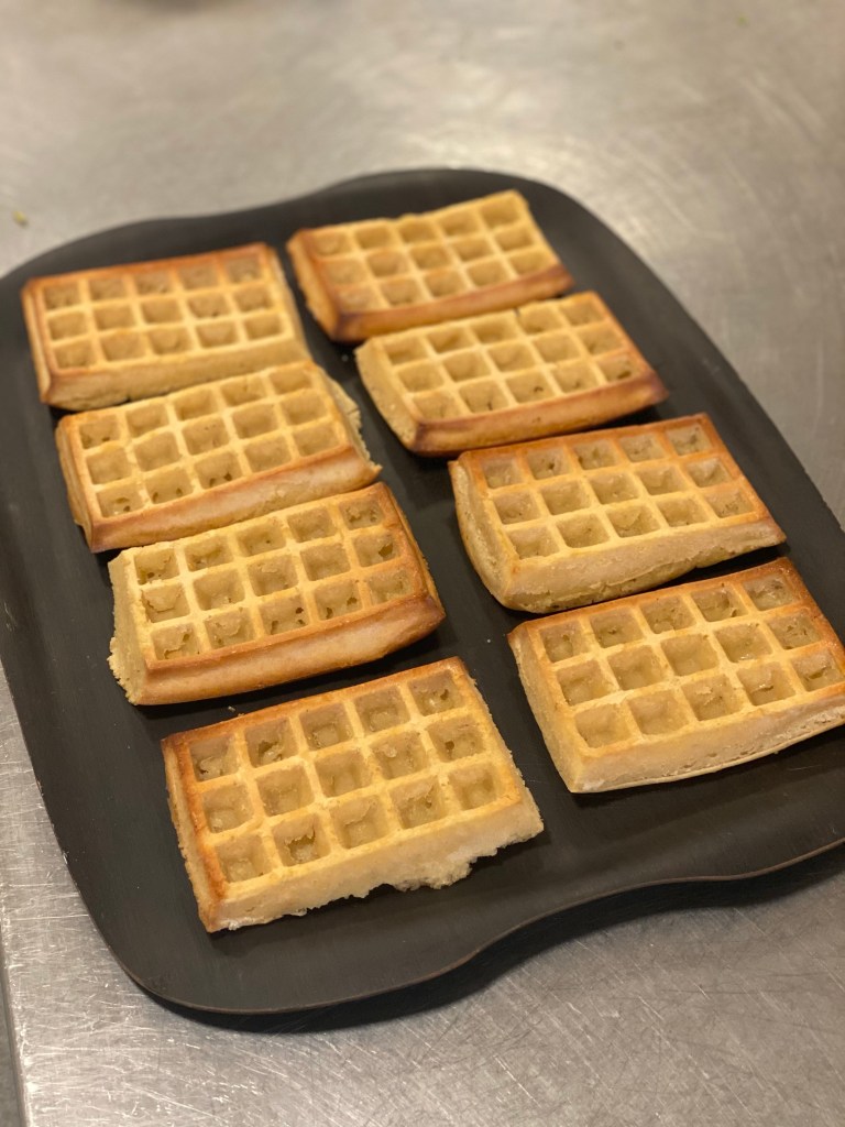 Po upieczeniu zostawilam gofry do wystudzenia a nasteonie powoli sciagam forme by nie uszkodzic gofrow. Gdy gofry sa wilkotne mozna wlozyc na chwile do piekarnika by staly sie chrupkie.